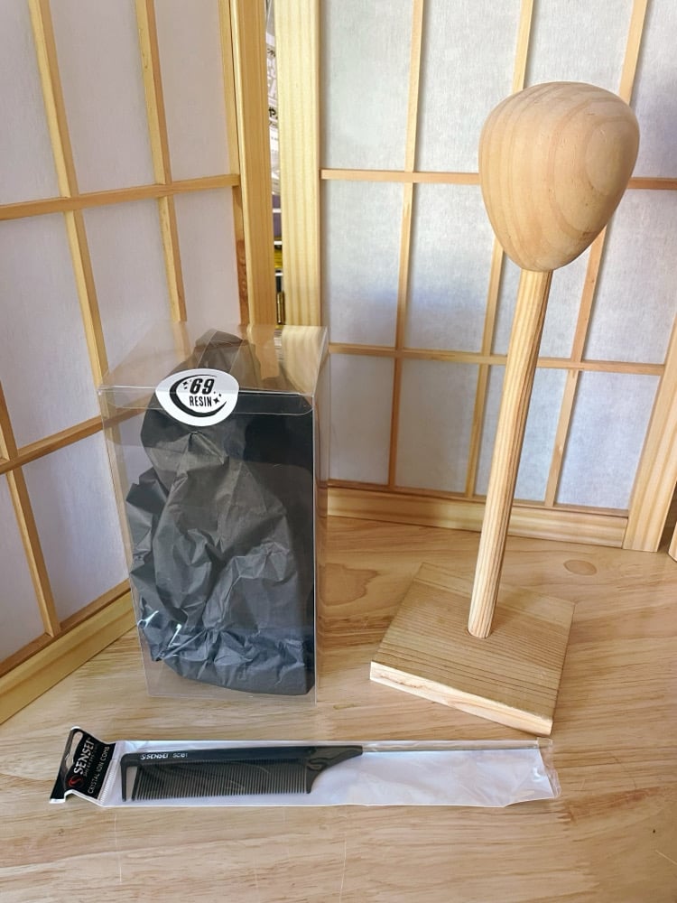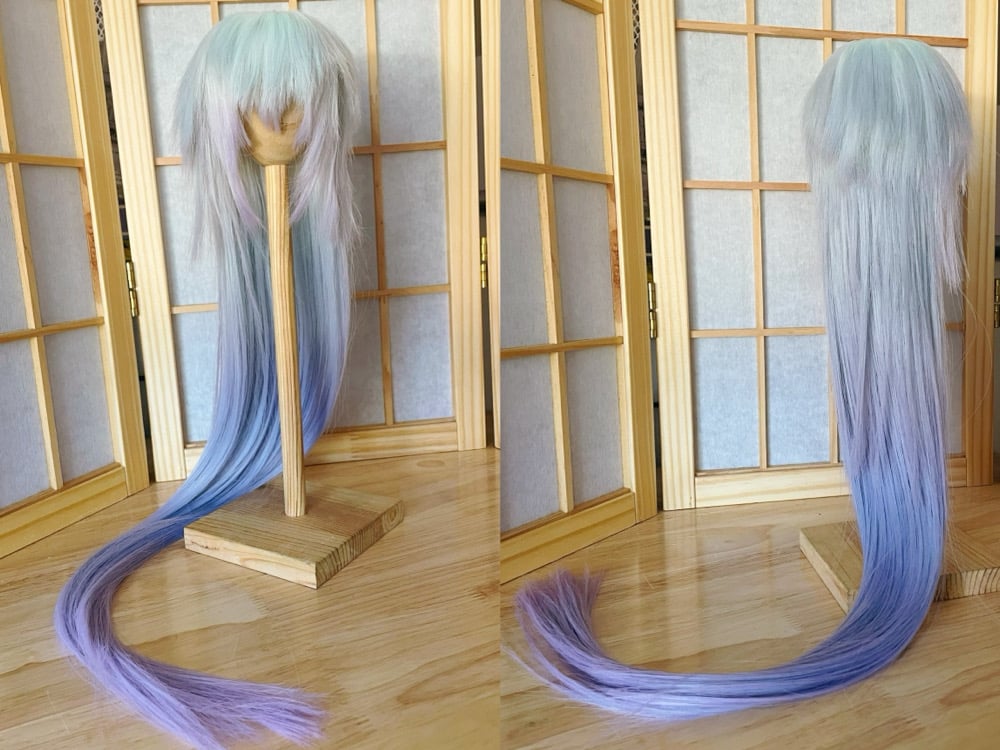 I made the wig and ombre dyed it. Fibers were originally pure white. Wig length is 60cm from nape to ends.